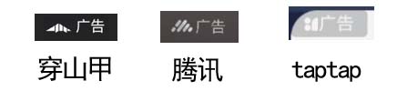 本社大部分游戏的中国区版本都使用了穿山甲和腾讯优量汇这两家供应商提供的广告,少部分游戏(魔王归来、原子暴走)额外还使用了taptap提供的广告